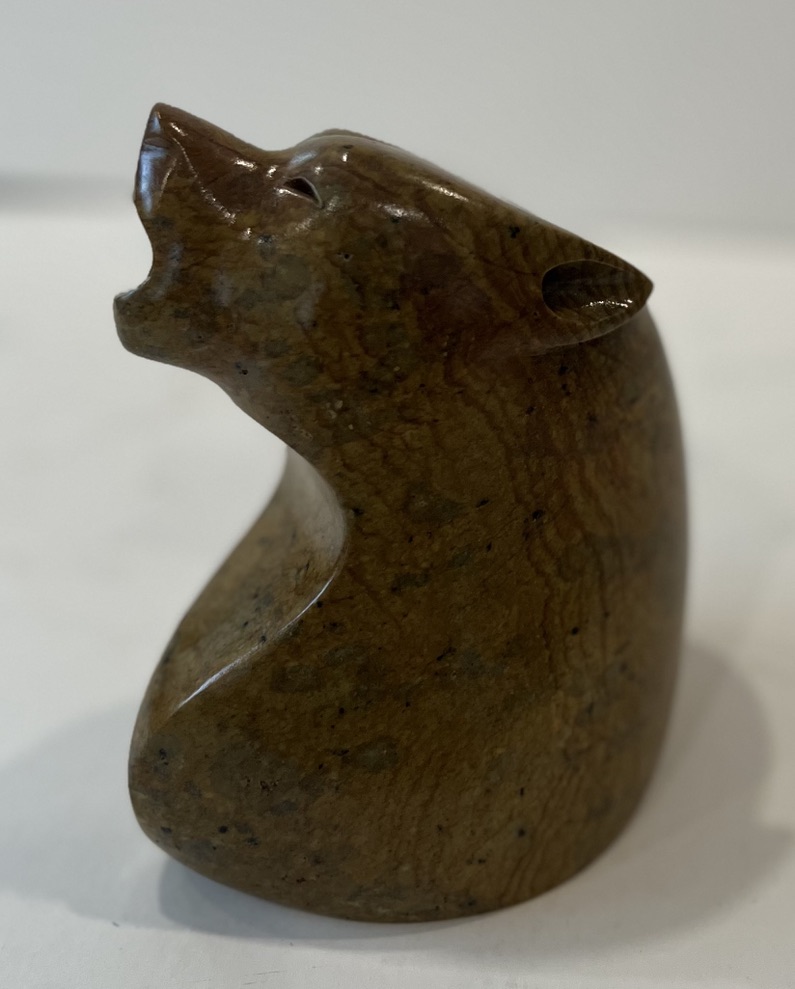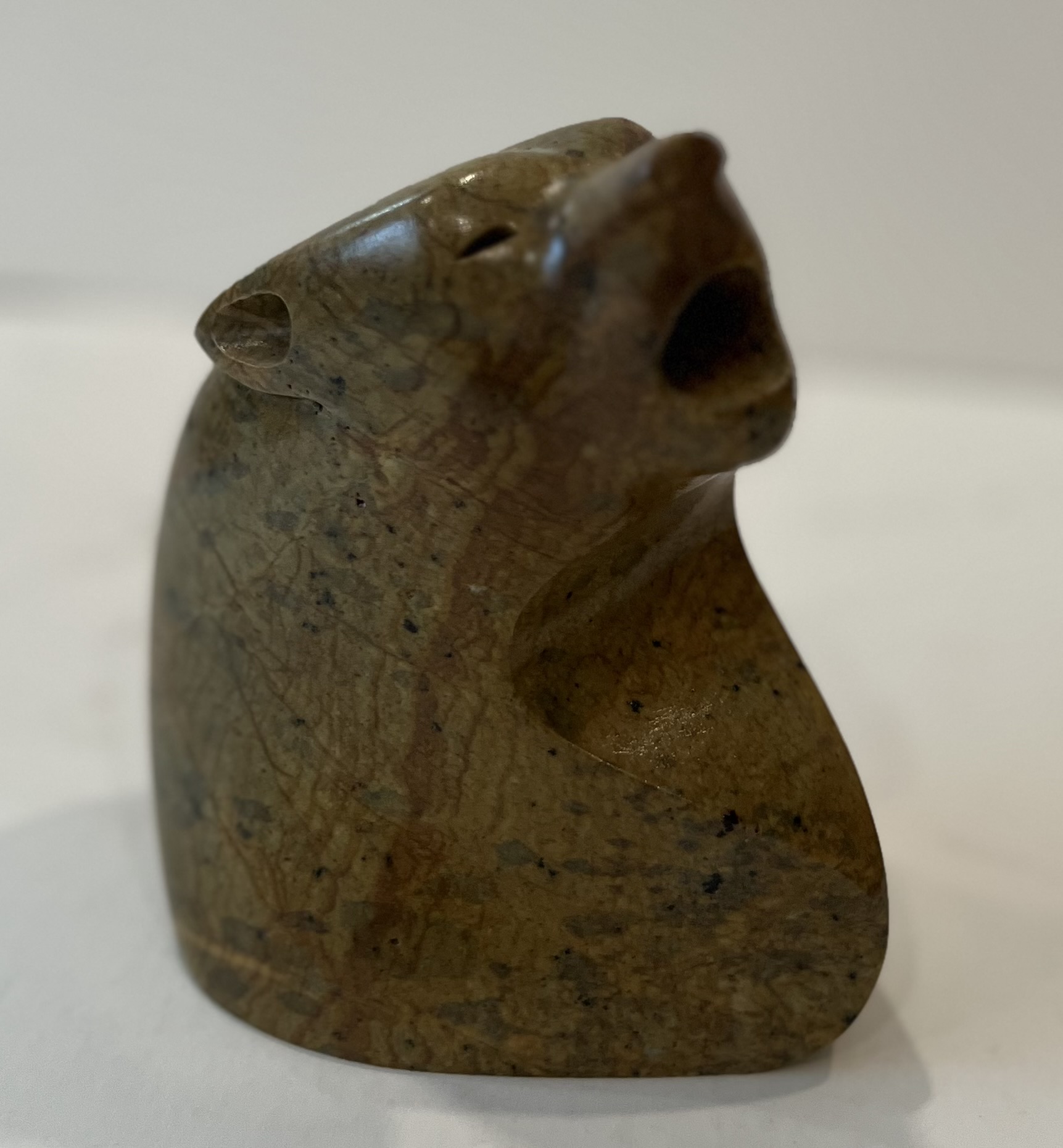 Artist: Leroy Henry is a member of the Turtle Clan. He is a traditionalist which means that he is not a member of the band, observes the old teachings. He carves mainly in steatite (commonly referred to as soapstone) Leroy lives and works on the Six Nations Indian Reserve